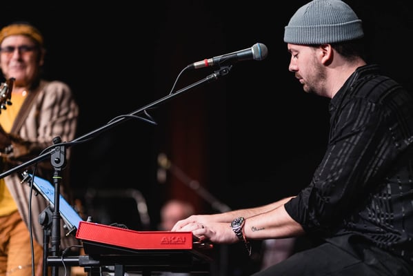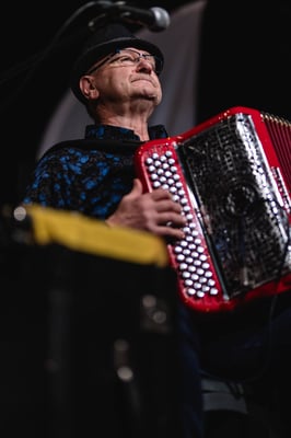 Marcel Adams Sohn Yann-Loup überzeugte mit bezaubernder Stimme und rhythmischer Perfektion. Auch auch Marcel Adams jahrzehntelanger Begleiter und Weltmeister an der roten Ziehharmonika, Christian di Fantauzi, der Multitasker Christian Conrad, der routinierte Charmeur Oliver Abt mit präziser, stets angenehmer Bass-Begleitung und nicht zuletzt der taktgebende Manager des Schlagzeugs.